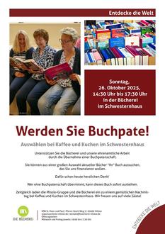 Am Sonntag, den 26. Oktober von 14:30 bis 17:30 Uhr laden wir herzlich ins Schwesternhaus zur diesjährigen Buchpatenaktion ein.