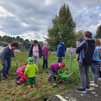 Die Villmarer Bürgerinnen und Bürger dürfen sich auch im kommenden Jahr wieder über ein paar mehr farbenprächtige Blüten im Frühjahr freuen. Zum dritten Mal schon haben sich fleißige Helferinnen und Helfer der Villmarer Landfrauen und des Gesangvereins Teutonia getroffen, um gemeinsam gerettete Blumenzwiebeln in die Erde zu pflanzen – in diesem Jahr wieder rund um die Loreto-Kapelle, wo es dann im kommenden Frühjahr richtig schön bunt werden wird. Nach dem großen Pflanzen, dem Einsatz von Spaten, Schubkarren, Kniekissen und Schaufeln, stärkten sich die kleinen und großen Helfer gemeinsam mit Kuchen, Keksen, Kaffee und Milch. Zum wiederholten Male hatten die beiden Vereine im Frühsommer im Rahmen einer gemeinsamen Nachhaltigkeits-Aktion zum Sammeln verblühter Blumenzwiebeln aufgerufen, denn diese treiben im folgenden Frühling zumeist wieder aus. Auch im kommenden Jahr sollen wieder Sammeleimer aufgehängt werden – denn viele Wiesen in Villmar können noch ein paar farbige Frühjahrsblüher vertragen.