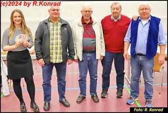 Die Bürgermeisterin Alicia Bokler (links) mit den beiden Spitzenplazierten Matthias Fraaß aus Hochheim (1.) und Lothar Schwejkard (3.) aus Ingelheim. Rechts Rainer Kulhanek und Gerhard HUGO Weil vom Veranstalter.