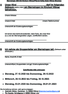 Bitte verwenden Sie gerne das abgedruckte Anmeldeformular. Hier finden Sie