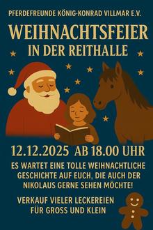 Die Pferdefreunde König-Konrad Villmar e. V. laden herzlich zur diesjährigen Weihnachtsfeier in der Reithalle auf dem Markushof in Villmar ein!