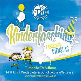 Der TV Villmar lädt für Faschingsdienstag, ab 14.11 Uhr zum Kinderfasching in die TV-Turnhalle am Lahnufer ein. Unter dem Motto „Kinderhelden" werden Ritter mit Prinzessinnen, Cowboys mit Indianern und noch viele weitere Helden bei verschiedenen Spielen Seite an Seite um den Sieg kämpfen. Bei Spiel und Spaß gibt es jede Menge zu gewinnen, auch das Schokokuss-Wettessen wird nicht fehlen. Angeboten werden Getränke, Kräppel und heiße Würstchen.