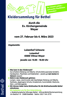 | 12.00 Uhr | Weyer Mittagstisch im ev. Gemeindehaus |