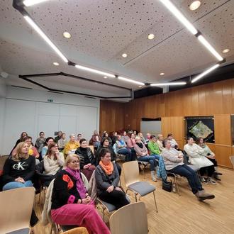 Fast 40 interessierte Zuhörerinnen informierten sich zur Ersten Hilfe am Kind.