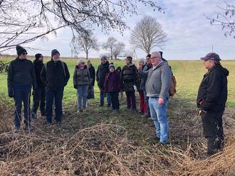 Gut 20 Interessierte machten sich am vergangenen Sonntag mit dem Naturschutzverein Villmar e.V. auf zur Winterwanderung. Bei bestem Winterwetter führte der ehemalige Vorsitzende Bernd Dresen die Gruppe zuerst zum „Bachborn“. Das Areal der Sumpfsegge dort wird seit Jahrzehnten von Vereinsmitgliedern gepflegt und steht unter besonderem Biotopschutz. Von dort ging es hinauf Richtung Galgenberg zur „Villmarer Heide“, auch dies ein ganz besonderer und schützenswerter Lebensraum mit typischer Vegetation der Heidelandschaft. Vorbei an Steinmauern, die an die Zeiten des Eisenerzabbaus erinnern, und teilweise der alten „Heerstraße“ entlang, führte die kurzweilige Wanderung übers Feld nach Oberbrechen. Dort konnten sich alle Naturfreunde in der Gaststätte „Zum Laubustal“ beim Mittagessen stärken.