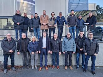 Das Foto zeigt die Geschäftsführer Horst, Carsten und Thorsten Meuser sowie Vertreter der CDU-Kreistagsfraktion mit ihrem Vorsitzenden Christian Wendel MdL, oben fünfter von links, Landrat Michael Köberle, oben erster von links, und Bürgermeister Matthias Rubröder, oben vierter von links.