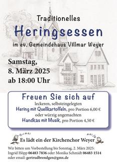 Für Kurzentschlossene: Die Anmeldung zum traditionellen Heringsessen beim Kirchenchor Weyer läuft noch bis zum 2. März. Serviert wird im evangelischen Gemeindehaus, Laubusstraße 24. Anmeldung über: Ingrid Höpp 06483 7836 oder Monika Schmidt 06483 1514 oder email: gertrudbrendgen@gmx.de