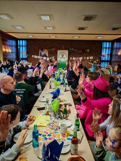 Zum Abschluss erhielten die Mitwirkenden selbstgebastelte Orden als Anerkennung für ihr Engagement. Das Krebbelkaffee 2026 zeigte einmal mehr, wie lebendig und gemeinschaftlich die Fastnacht in Aumenau gefeiert wird – kurzweilig, humorvoll und mit bester Stimmung bis zur letzten Minute.