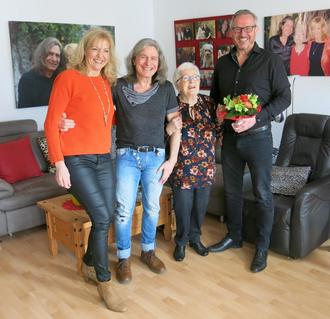 Ihren 92. Geburtstag feierte am vergangenen Montag Christiane Troubat in Germersheim. Bürgermeister Marcus Schaile überbrachte der sympathischen Altersjubilarin zu diesem besonderen Anlass die herzlichen Grüße und Glückwünsche der Stadt sowie einen farbenfrohen Frühlingsgruß, über den sich die rüstige Französin besonders freute. Unser Bild zeigt das junggebliebene Geburtstagskind zusammen mit seinem Sohn, seiner Schwiegertochter und dem Germersheimer Stadtoberhaupt.