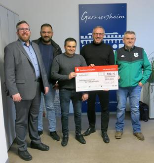 Die Fußballer vom VfR Sondernheim und von Türkgücü Germersheim haben, um Spenden zu sammeln und um Gutes zu tun, ein Benefizspiel absolviert. Den Erlös dieses Spieles bezuschusste Bürgermeister Marcus Schaile nun mit weiteren 500 Euro aus Mitteln der Sparkassenstiftung. Geld, das nun in der Erdbebenregion für Hilfe vor Ort eingesetzt wird. „Gesellschaftliches Engagement endet nicht vor unserer Haustür - daher begrüße ich die Initiative der Sportler ganz besonders. Es zeigt, dass Menschlichkeit und Empathie auch tausende Kilometer entfernt Dinge in Gang setzen kann“, betonte der Bürgermeister bei der Spendenübergabe im Stadthaus.