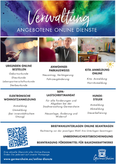 Über die städtische Homepage www.germersheim.eu/online-dienste können Bürgerinnen und Bürger immer mehr unterschiedliche Online-Dienste nutzen, die ihnen den persönlichen Gang zur Verwaltung ersparen.