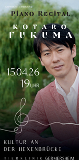 Am 15. April konzertiert Kotaro Fukuma in der Tierklinik Germersheim. Lassen Sie sich dieses hervorragende Klangerlebnis nicht entgehen und sichern Sie sich bereits jetzt Ihre Karten!