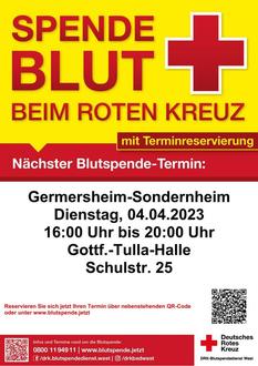 Kommen Sie am 4. April 2023 zwischen 16 und 20 Uhr in die Tulla-Halle in Sondernheim und helfen Sie mit Ihrer Blutspende, Leben zu retten!