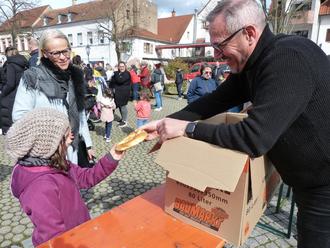 Nachdem der Schneemann und damit symbolisch der Winter auf dem Kirchenplatz verbrannt wurden, gab es eine leckere Sommerbrezel für jedes Kind, welche in Germersheim gemeinschaftlich von der Germersheimer Wirtschafts- und Leistungsgemeinschaft (GWL), dem Südpfalz-Tourismus Stadt Germersheim sowie der Stadt Germersheim gespendet wurde. Ausgegeben wurden die Sommerbrezeln von Bürgermeister Marcus Schaile und Vertreterinnen und Vertretern der GWL.