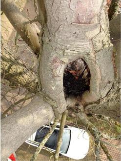 Fotoaufnahmen von den schwer geschädigten Kastanienbäumen: