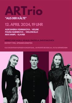 Neben einigen Konzertauftritten konnte sich das ARTrio im Januar 2024 den 1. Preis beim Wettbewerb „Nouvelles Étoiles“ erspielen und wurde daraufhin zu einem Konzert nach Paris eingeladen. Doch zuvor machen die jungen Musiker in Germersheim Station und treten am Freitag, dem 12. April 2024 um 19 Uhr im Konzertsaal des Kulturzentrums „Hufeisen“ auf. Der Eintritt ist frei. Spenden werden erbeten.