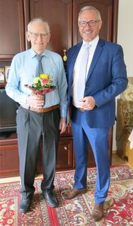Walter Breininger an seinem 91. Geburtstag mit Germersheims Bürgermeister Marcus Schaile. Foto: SNelles | Stadt Germersheim