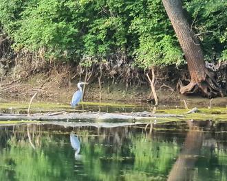 Ein besonderes Lob richteten alle Teilnehmenden an ihren Bootsführer Karl Dirolf. Mit Fachwissen, Besonnenheit und Humor vermittelte er spannende Einblicke in die Auenlandschaft und erklärte anschaulich die heimische Tier- und Pflanzenwelt. Während der Fahrt konnte er zusammen mit den Gästen einige Tiere, unter anderem Schwäne, einen Reiher sowie eine Nutria beobachten. Lediglich der sonst häufig gesichtete Eisvogel ließ sich an diesem Tag bedauerlicherweise so gar nicht blicken...