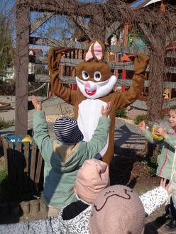 Er begrüßte jedes Kind und schickte sie auf Nesterjagd. Wir bedanken uns recht herzlich beim Osterhasen für seinen Besuch und hoffen sehr, dass alle ein schönes und sonniges Osterfest hatten.