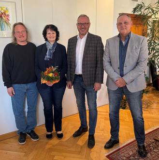 Nach nahezu 20 Jahren als Sekretärin der Städtischen Musikschule und Musikakademie Germersheim ging Christiane Frank zum 30.4.2025 in Rente. Vor ihrer Tätigkeit im Sekretariat der Musikschule hatte Christiane Frank Flöte unterrichtet, bevor sie in das Sekretariat überwechselte und in den fast zwei Jahrzehnten stets erste Anlaufstelle für Schülerinnen und Schüler der Musikschule, für Eltern und Lehrkräfte war und naturgemäß auch die Verbindung zur Stadtverwaltung in den laufenden Geschäften pflegte. „Mit Ihnen geht eine Ära in der Musikschule zu Ende“, unterstrich Germersheims Bürgermeister Marcus Schaile (2.v.r.) bei der Verabschiedung von Christiane Frank, der zudem noch seinen Dank für die in dieser Zeit geleistete, stets zuverlässige und gute Arbeit der Musikschulsekretärin zum Ausdruck brachte. Sein Dank wurde begleitet von vielen guten Wünschen für den nun bevorstehenden beruflichen Ruhestand, den Christiane Frank u.a. auch dazu nutzen wird, häufiger auf Reisen zu gehen, um z.B. ihre Tochter zu besuchen, die in Japan lebt und arbeitet. Dem Dank des Germersheimer Bürgermeisters schlossen sich der Leiter der Musikschule, Bernhard Stephan (ganz links im Bild), sowie Ludwig Hans als stellvertretender Büroleiter gerne an.