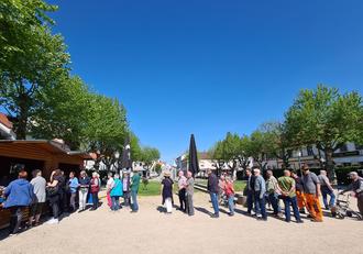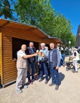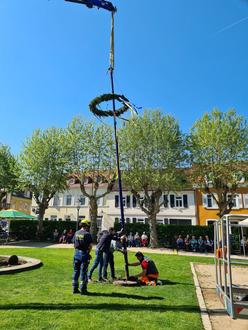 Das traditionelle Maibaumstellen am Mittwoch vergangener Woche auf dem Königsplatz in Germersheim war in diesem Jahr wieder Anziehungspunkt für zahlreiche Bürgerinnen und Bürger der Stadt Germersheim. Mit tatkräftiger Unterstützung durch den Ersten Beigeordneten Dr. Sascha Hofmann wurde in Zusammenarbeit mit Mitarbeitenden des THW und des Städtischen Betriebshofs feierlich der Maibaum gestellt. Das Seniorenorchester sorgte wie immer ausgezeichnet für die musikalische Unterhaltung und Mitarbeitende des Germersheimer Tourismus-, Kultur- und Besucherzentrums kümmerten sich um das leibliche Wohl der Besucherinnen und Besucher, indem sie leckere Weißwürste und Brezeln, kühles Bier und Erfrischungsgetränke kostenfrei ausgaben. Und auch der blaue Himmel und das schöne Sommerwetter trugen dazu bei, dass an diesem Vormittag eine sehr fröhliche und gesellige Biergartenstimmung aufkam, jeder sehr gerne auf dem Königsplatz verweilte und interessante Gespräche führte.