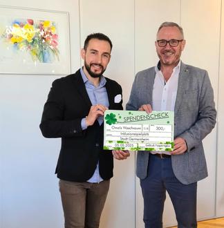 Saltuk Yasaroglu, Inhaber von Oma´s Waschraum in der Marktstr. 22 in Germersheim, rief Ende März zu einer 3-tägigen Spendenaktion zugunsten des städtischen Inklusionsspielplatzes im Stadtpark Fronte Lamotte auf. Erzielt wurden insgesamt 271,50 Euro aus der Textilreinigung. Kurzerhand rundete Herr Yasaroglu den Betrag auf und konnte so am vergangenen Montag Bürgermeister Marcus Schaile eine Spende in Höhe von 300.- Euro überreichen. „Ich bedanke mich sehr herzlich für Ihr großes Engagement und Ihre Spende für unseren geplanten Inklusionsspielplatz“, so Bürgermeister Schaile.