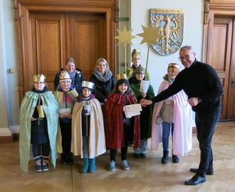 Die Sternsinger waren am Dreikönigswochenende in der Festungsstadt unterwegs. Auch im Bürgersaal des Stadthauses traten die jungen Sängerinnen und Sänger auf und versahen das Haus nach gutem, altem Brauch mit dem Türsegen. Bürgermeister Marcus Schaile (ganz rechts) dankte der talentierten Gruppe herzlich für ihr Kommen.