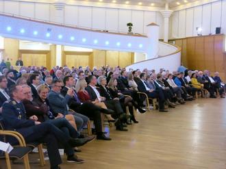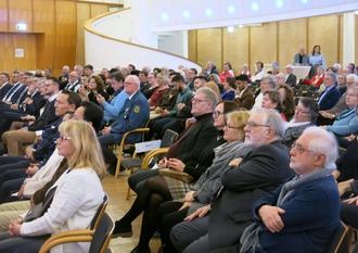Rund 250 Besucherinnen und Besucher, unter ihnen der Bundestagsabgeordnete Thomas Hitschler, den Schaile stellvertretend für alle anwesenden Ehrengäste aus den Bereichen Politik, Wirtschaft, Kultur, Ehrenamt und Vereinsleben herzlich begrüßte, waren der Einladung gefolgt. Im Mittelpunkt des Empfangs stand die Neujahrsansprache des Bürgermeisters, bei der dieser einen Rückblick auf das Geschehen in Germersheim in den Jahren 2020 bis 2023 sowie einen Ausblick auf die Ziele und Vorhaben im Jahr 2024 gab. Das Germersheimer Stadtoberhaupt betonte, dass man im Hinblick auf alle Herausforderungen, die das neue Jahr mit sich bringe, wie z.B. die Umsetzung von Bauvorhaben, Sanierungsprojekten und des Kita-Gesetzes, durch und durch positiv gestimmt sei: „Wir bleiben trotz aller Schwierigkeiten optimistisch. Wir werden Lösungen finden. Gemeinsam. Darauf vertrauen wir, darauf bauen wir. Denn die Zukunft wartet nicht, sie will jetzt geplant und gestaltet werden.“ Basierend auf dieser positiven Grundstimmung habe man als Jahresmotto „Mit Vertrauen und Verantwortung in die Zukunft“ für 2024 gewählt. Am Ende seiner Neujahrsansprache, die traditionell durch eine umfangreiche Bildpräsentation untermalt wurde, bedankte sich das Stadtoberhaupt bei allen, die sich in den vergangenen Jahren mit viel Engagement in den Dienst der Allgemeinheit gestellt haben. Schailes besonderer Dank für die gute und immer reibungslose Zusammenarbeit richtete sich an den langjährigen Sondernheimer Ortsvorsteher Friedel Rentschler, der den Neujahrsempfang der Stadt Germersheim zum letzten Mal in offizieller Funktion besuchte, da seine Amtszeit im Juni 2024 endet und Rentschler aus Altersgründen auf eine weitere Kandidatur verzichtet.
