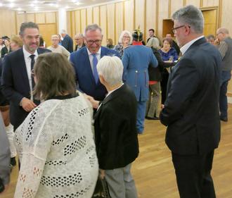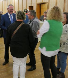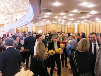 Im Anschluss an die Neujahrsansprache des Germersheimer Bürgermeisters nutzten die meisten Gäste noch die Gelegenheit, sich beim von der Stadtwerke Germersheim GmbH gesponserten Imbiss zu stärken und den Empfang mit angeregten Gesprächen in geselliger Runde ausklingen zu lassen: