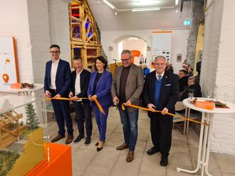 Ein Schnitt, der den Startschuss gab: Gemeinsam eröffneten die Beteiligten den neugestalteten Ausstellungsbereich.