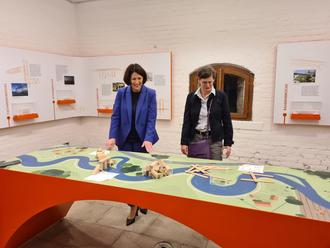 Mit Interesse erkundet Wirtschaftsministerin Daniela Schmitt (links im Bild) die neuen Ausstellungsobjekte.