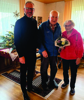 Die Freude über den Geburtstagsbesuch des Bürgermeisters stand dem Jubilar ins Gesicht geschrieben. Glücklich und stolz berichtete er zusammen mit seiner Frau von ihren drei Kindern, zu denen sie ein sehr gutes Verhältnis pflegen, den sechs Enkeln und ihren sechs Urenkeln, von denen das kleinste gerade ein paar Monate alt sei.