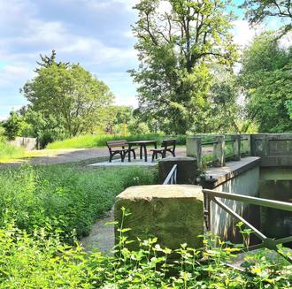 Dank eines Projektvorschlags der Lokalen Agenda aus dem Jahr 2024 hat die Stadt Germersheim Maßnahmen zur Verschönerung des beliebten Schlangenwegs umgesetzt. Am Teilungswehr der Queich wurden eine kombinierte Sitz- und Tischgruppe sowie zwei zusätzliche Bänke entlang des Weges aufgestellt.