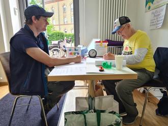 Ganz viel Kreativität lag in der Luft! Der erste Ausstellungstag ging auf eine besondere Weise zu Ende: Hobbymaler Dieter Marz und ein junger Besucher, Christian Schönstädt aus Germersheim, malten sich während einer spontanen Mal-Aktion gegenseitig und hatten dabei viel Freude. Fotos: SMohr | Stadt Germersheim