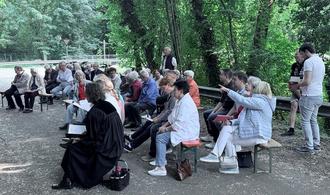 Pfarrerin Anita B. Meyer und Pastoralreferentin Irina Mank leiteten die ökumenische Andacht und verbanden das Gedenken an Otto Bügel mit dem Thema „Frieden“, für den Bügel mit der Errichtung der Marienstätte ein Zeichen gesetzt hatte. Unterstützt wurden sie von Thomas Schelter, der die Veranstaltung musikalisch umrahmte, und von Daniela Gschwind sowie von Gabriele Hellmann vom Gemeindeausschuss der katholischen Pfarrgemeinde Sondernheim, die ein Gebet und die Fürbitten sprachen. Sondernheims Ortsvorsteher Andreas Müller bedankte sich in einer berührenden Rede bei Germersheims Bürgermeister Marcus Schaile, der die Idee dieser Gedenkveranstaltung sofort begrüßt hatte