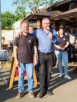 Beim anschließenden traditionellen Fassanstich kam es dann zu einer kleinen Planänderung. Da der langjährige Marktmeister Christian Willy nach 24 Jahren verabschiedet wurde, weil er eine neue Stelle innerhalb der Germersheimer Stadtverwaltung antreten wird, überließ ihm der Bürgermeister kurzerhand den Fassanstich, welcher dieser souverän und mit gewohnter Ruhe meisterte.
