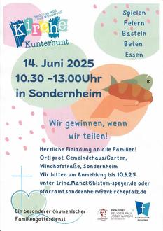Am 14. Juni um 10:30 Uhr feiern wir wieder Kirche Kunterbunt in Sondernheim!