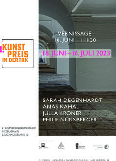 Die Vernissage findet daher am Sonntag, 18. Juni 2023 um 11:30 Uhr im Kunstverein Germersheim, Zeughausstraße 10, 76726 Germersheim statt. Die Ausstellung ist vom 18.06. bis 16.07. wie folgt geöffnet: samstags von 15:00 bis 18:00 Uhr und sonntags von 14:00 bis 18:00 Uhr. Weitere Informationen: www.kunstverein-germersheim.de, Ansprechpartner: Prof. Dr. Chris Gerbing, E-Mail: kunstpreis@technologieregion-karlsruhe.de.