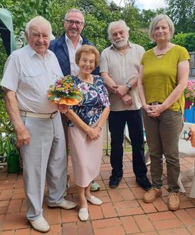 Am Samstag vergangener Woche feierte Wolfgang Zschäge aus Germersheim gemeinsam mit seiner Lebensgefährtin, der Familie und den Freunden seinen 96. Geburtstag. Bei strahlendem Sonnenschein überbrachte Bürgermeister Marcus Schaile dem rüstigen und sympathischen Altersjubilaren neben einem sommerlichen Blumenstrauß sowohl seine persönlichen als auch die herzlichen Glückwünsche der Stadt Germersheim und wünschte Herrn Zschäge alles erdenklich Gute und noch viele weitere glückliche und gesunde Jahre.