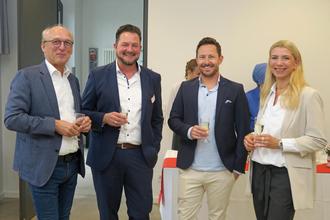 (V.l.n.r.) Caritas-Direktor Vinzenz du Bellier, Wolfgang Grill, Timo Kittler, Leiter der Abteilung Caritas-Altenzentren und Wolfgang Grills Ehefrau Nicole Talaska. Foto: Henning Wiechers