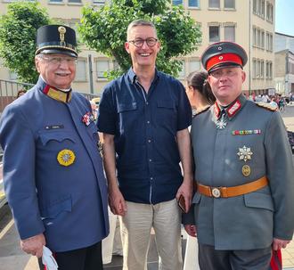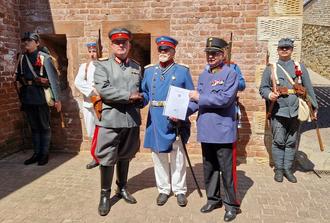 Auf Einladung der Deutschen Gesellschaft für Historische Uniformkunde e.V. in Germersheim, nahmen Präsident und Ehren-Präsident der Österreichisch - Deutschen - Akademie für Traditionsoffiziere und Unteroffiziere, Generalmajor i.TR. Helmut Eberl aus Wien (amtierender OEDA Präsident) und Generalmajor i.TR. Martin Wiegand (Ehren-Präsident der OEDA) als Manöver - Inspekteure an den Historischen Festungsmanöver am 17. Juni 2023 ganztägig teil. Bei Kaiserwetter wurden neben einer großen Waffen- und Uniformschau, Feldküche, Sanitätstruppe usw. auch Infanterie Angriff und Artilleriebeschuss simuliert, was viele interessierte Gäste des Festungsfestes anzog. Mit einem Zug der Historischen Soldaten zum Friedhof und Kranzniederlegungen für die Gefallenen der Kriege, sowie die Gefallenen Kameraden der Bundeswehr, erfolgte auch eine Kranzniederlegung am Ehrenmal für die gefallenen französischen Soldaten bevor die Manöver begannen. Mit unzähligen Besuchern über den Tag verteilt und vielen Fragen der Gäste, die natürlich alle beantwortet werden konnten, endete ein weiteres gelungenes Manöver im Stadtpark Fronte Lamotte in Germersheim am späten Abend mit einem Kameradschaftsabend im Grabenwehrgebäude, der erst früh am Morgen ausklang. Für seine Unterstützung und sein außergewöhnliches Engagement um die Historischen Festungsmanöver wurde Major i.TR. Jürgen Rüsenberg in den Manövern seitens der Internationalen Gesellschaft für Friedensarbeit, Völkerverständigung und Traditionspflege mit der 3. Klasse des IGFVT Verdienstordens ausgezeichnet - hierzu gratulieren wir sehr herzlich.