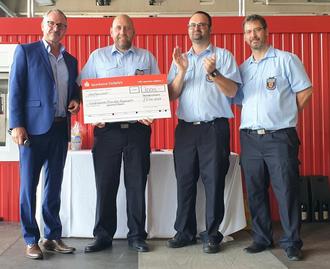 Im Anschluss überreichte der Stadtchef dem Förderverein der Freiwilligen Feuerwehr Germersheim einen Spendenscheck in Höhe von 3000.- Euro für die Umsetzung verschiedener Projekte, u.a. für die Errichtung eines Grillplatzes.