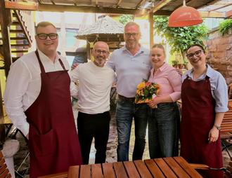 Das Stadtoberhaupt überbrachte neben einem sommerlichen Blumengruß ebenfalls herzliche Glückwünsche der Stadt Germersheim. Er wünschte Vitore Pietri und ihrer ganzen Familie alles Gute, viel Freude und Erfolg für ihre gastronomische Zukunft hier in Germersheim.