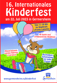 Am Samstag, dem 22. Juli 2023 feiert Germersheim im schönen Stadtpark Fronte Lamotte endlich wieder das mittlerweile 16. Internationale Kinderfest, zu dem alle „großen und kleinen Kinder“ sehr herzlich eingeladen sind.