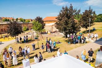 Was im Dezember 2024 mit ersten Umbaumaßnahmen begann, ist nun ein Ort geworden, an dem alle Kinder - mit und ohne Beeinträchtigung - willkommen sind, um gemeinsam und gleichberechtigt zu spielen. „Mit dem neuen inklusiven Spielplatz haben wir einen Ort geschaffen, an dem soziales Miteinander gefördert wird und etwaige Berührungsängste abgebaut werden können. Ich bin sehr glücklich darüber, dass der Inklusionsspielplatz Fronte Lamotte durch ein starkes Bündnis aus Stadtverwaltung, Ehrenamt, Wirtschaft und engagierten Bürgerinnen und Bürgern ermöglicht wurde. Unser aller Einsatz hat gezeigt, wie viel bewegt werden kann, wenn Menschen sich gemeinsam für eine gute Sache einsetzen“, bedankt sich Bürgermeister Marcus Schaile herzlich bei allen Unterstützern.