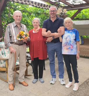 Benno Diebold, hier mit Frau und Tochter, freute sich ganz besonders über den Geburtstagsbesuch des Germersheimer Bürgermeisters Marcus Schaile. Foto: SMohr | Stadt Germersheim