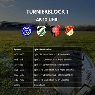 Eröffnet wird das Turnier feierlich durch Marcus Schaile, Bürgermeister der Stadt Germersheim. Ein passender Rahmen für den Auftakt, denn gleich zu Beginn erwartet die Besucher ein echtes Stadtderby: Der FV Germersheim trifft auf den Nachbarn VfR Sondernheim. Auch Andreas Müller, Ortsvorsteher von Sondernheim, wird als Gast anwesend sein und das traditionsreiche Aufeinandertreffen seines Stadtteils mitverfolgen.