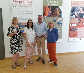 Bürgermeister Marcus Schaile beglückwünschte die FTSK-Dekanin Prof. Dr. Dilek Dizdar, die FTSK-Prodekanin Prof. Dr. Silvia Hansen-Schirra, die FTSK-Geschäftsführerin Dr. Eva Katrin Müller sowie Dr. Doris Kinne vom Dekanat Öffentlichkeitsarbeit und Studiengangentwicklung zur äußerst gelungenen Ausstellung im Weißenburger Tor und wünschte dem Fachbereich 06 für die gesamte Ausstellungsdauer einen möglichst großen Besucherandrang, denn das Thema „Übersetzen und Dolmetschen“ sei auch spannend für alle, die sich noch nicht mit der Translation beschäftigen.
