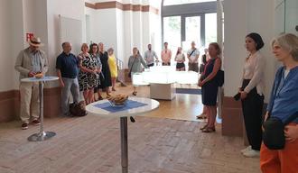 Reges Interesses bei der Ausstellungseröffnung der "Translationsmomente" im Weißenburger Tor. Bis zum 30. September ist die Ausstellung während der regulären Öffnungszeiten des Tourismus-, Kultur- und Besucherzentrums zugänglich.