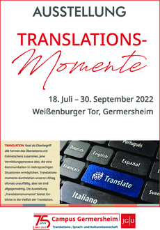 Die Ausstellung „Translationsmomente“ ist Teil der Feierlichkeiten zum Jubiläum „75 Jahre Campus Germersheim“ und zeigt sehr anschaulich die Vielfalt des Übersetzens und des Dolmetschens. Es werden Akteure, Orte und Handlungsformen der Translation vorgestellt. Die Ausstellung beleuchtet dabei teils bekannte und teils überraschende Aspekte.